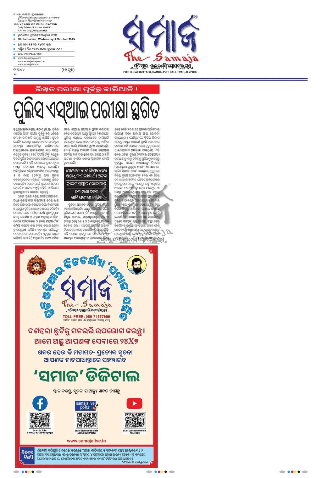 The Samaja daily ePaper - Watch digital ePaper of Odisha from around the world.